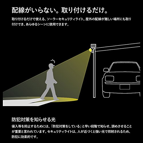 ソーラーライト センサーライト セキュリティライト 人感センサー LED 太陽発電 屋外 玄関 車庫 庭 照明用 夜間自動点灯 防水 防犯