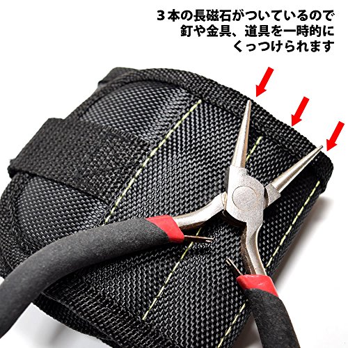 磁石付きのアームバンドです。建築作業などで、釘や金具、道具などを一時的に磁石部分につけることが出来ます。