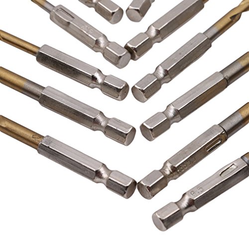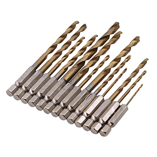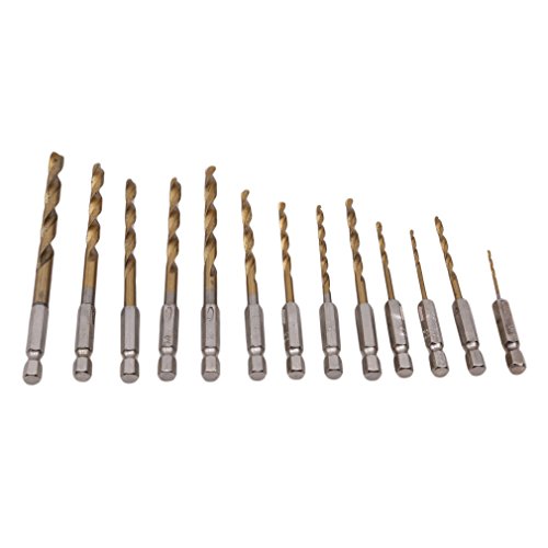 BEE&BLUE 六角軸ドリル ドリル刃セット 13本 高速鋼ドリルビット 鉄工用ドリル ネジ抜き専用工具 チタンコーティング ストレート切削シャンク 木工金属掘削 穴あけツールパワーツール