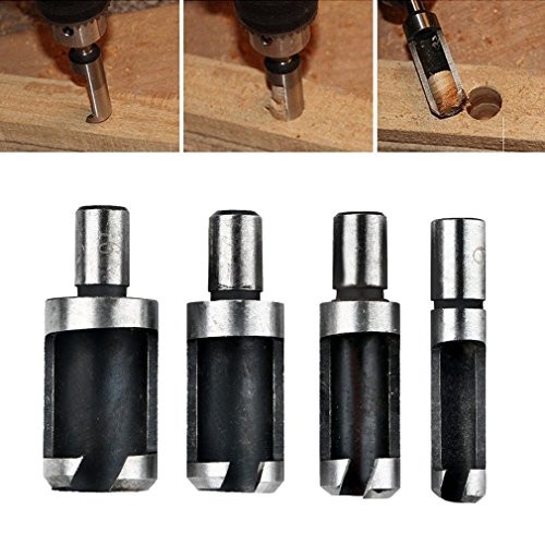 BEE&BLUE プラグカッター 高炭素鋼 木工ドリル 穴あけビット【8本セット】 筒形ドリルビット4本 四歯面取りカッター4本