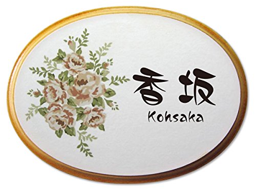 かわいい表札屋さん *BEES CRAFT* オリジナル バラの表札 シックブラウン【M オーバル】32398132 <取り付け簡単> 吊り下げもできます