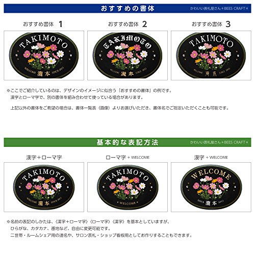 かわいい表札屋さん *BEES CRAFT* オリジナル クリスタルデコ表札 英国風 コスモス【M オーバル】34477571 <取り付け簡単> 吊り下げもできます