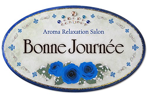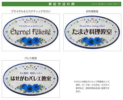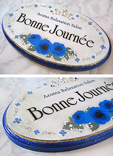 かわいい表札屋さん *BEES CRAFT* オリジナル クリスタルデコ表札 ラピスラズリ ローズ【ワイドオーバル】80115169 <取り付け簡単> 吊り下げもできます