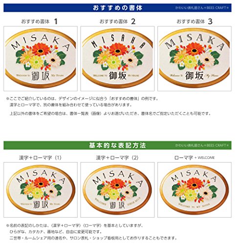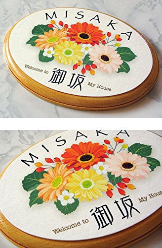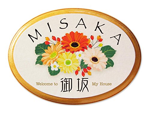 かわいい表札屋さん *BEES CRAFT* オリジナル グラフィックデザイン表札 英国風 ガーベラ【R オーバル】59429442 <取り付け簡単> 吊り下げもできます