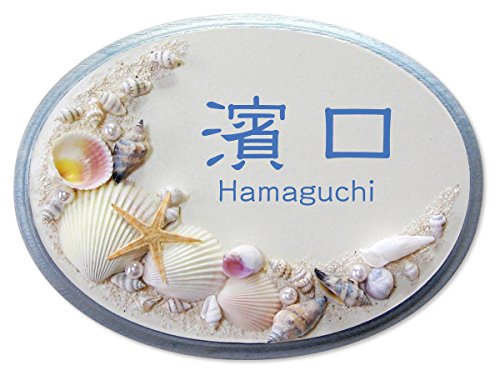 かわいい表札屋さん *BEES CRAFT* オリジナル 3Dデコ表札 貝殻デコ【M オーバル】33097253 <取り付け簡単> 吊り下げもできます