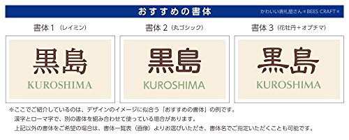 - ご注文いただいてから、ご希望のベースデザイン・書体・文字色・表記方法、ネームプレートのタテとヨコの寸法をおたずねするメールをお送りします。◆◆スマホの場合はPCからのメールを受信可能にしておいてください。