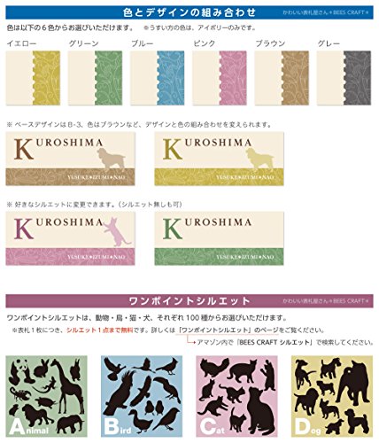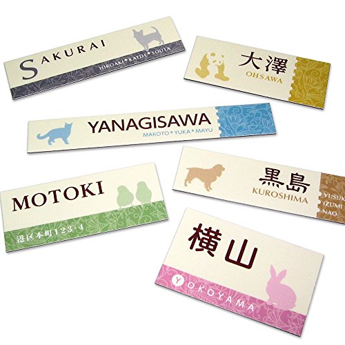 - 「郵便受けの名前、手書きでは物足りない」というあなたに。カジュアル・リゾートをイメージした明るく軽やかなデザインの表札です。犬・猫・小鳥・動物などのシルエットをインクルードしたレイアウトで、ペットと暮らす方にもおすすめ。マグネットタイプの表札なので、マンションの集合ポストや表札ユニット等、磁石のくっつく場所に簡単に貼ったりはがしたりできます。両面テープをお付けすることもできます(無料)。