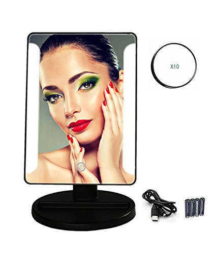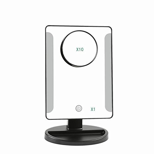 メイクアップミラーLED Lighted Vanityミラースポットミラー10 x拡大鏡、タッチセンサーTabletop Cosmetic Mirror with USB電源供給電池