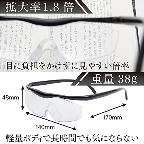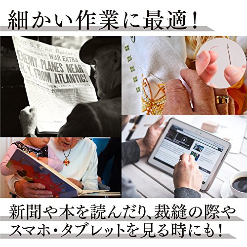 - 【細かい作業にも最適】従来のルーペのように持つ必要がなく、メガネタイプなので両手が自由に使えるから便利!針に糸を通す細かな作業や読書・スマートフォンの細かい文字を読むのに最適です。