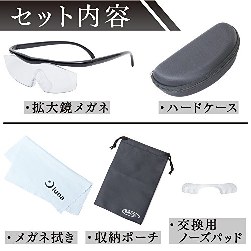 - 【嬉しい5点セット】セット内容:眼鏡型ルーペ・ハードケース・ソフトケース・メガネクリーナー・交換用ノーズパット。特に無くしてしまいやすいノーズパットが付属してあるので安心してご利用いただけます。