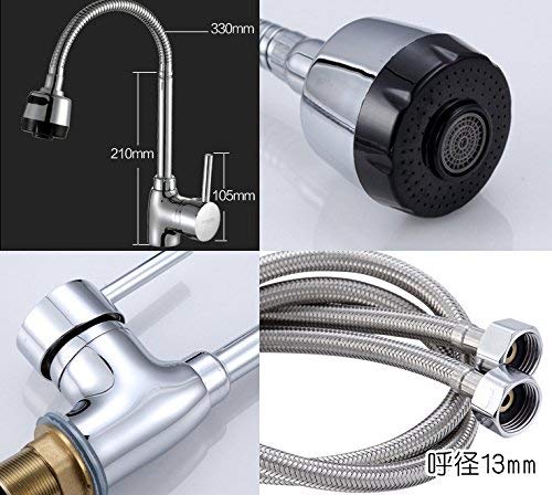 一般的な家庭のシンクにマッチする、お手入れ簡単で清潔感あふれるシンプルなデザインのモダン蛇口です。キッチン用、洗面用、浴室用に利用できる自在アームのフレキシブルシャワーヘッドです。シンプルな操作で吐水・止水できるので、使用頻度や片手操作に重宝する台所での利用がおすすめです。レバーハンドルの傾き具合と連動し冷水・温水の通水路の開閉を加減し、吐水量と水温を調節できます。本体のサイズはジャバラ部分までの高さが210mm、ジャバラホース部分の長さ330mmです。本体と別に配管ホース60cmが2本付属しています。配管ホースの呼び径は13mm、水栓本体の呼び径は25mmです。吐水はシャワーヘッド部分のボタンにより、ストレートとシャワーに切り替え可能です。