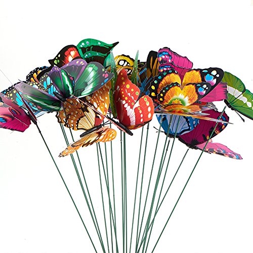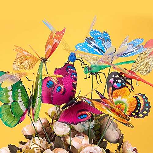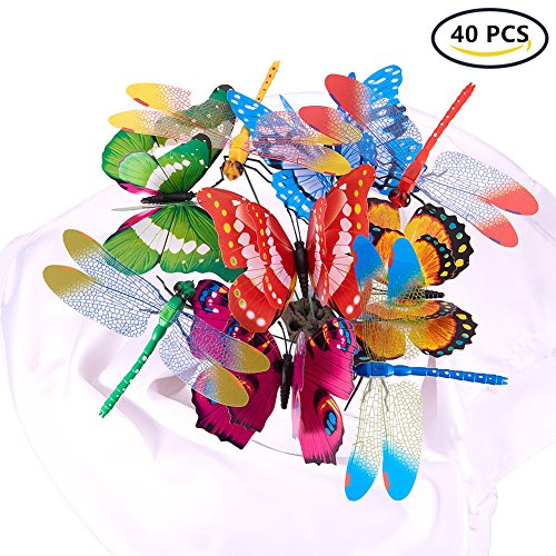 BENECREAT 20pcs蝶飾り20pcsトンボ飾り ガーデンオーナメント 蝶の装飾 植木鉢の装飾 庭装飾 カラフル