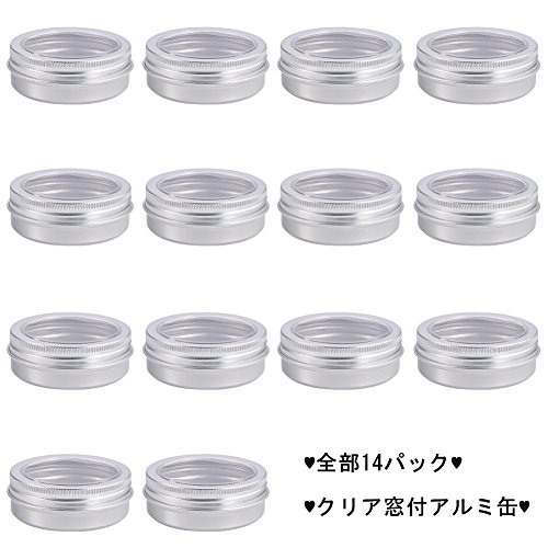 BENECREAT 14個セット60mlアルミ缶 クリア窓付アルミ缶 アルミネジキャップ缶 小分け容器 詰め替え容器 クリームケース 化粧品・クリーム・小物用収納ボックス シルバー