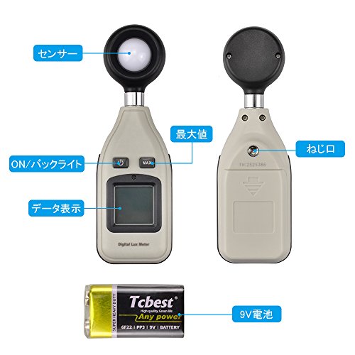 - 最大値測定、最小値の測定、データホールド、測定値の差の表示、バックライト、自動オフ、LUX / FC単位切換、低電量表示等の機能を有している多機能ルクスメーターです。