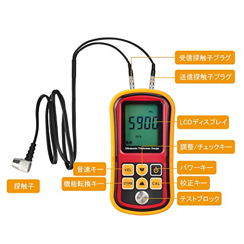 - 鉄、アルミニウム、銅、真鍮、亜鉛、石英ガラス、ポリエチレン、PVCなどの厚さが簡単に測定でき高精度超音波厚さ計です。