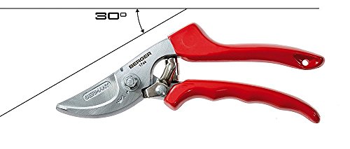 Berger pruning shear # 1744 is a top quality pruner made in Germany. It has a forged and sturdy metal body and an angled cutting head for optimal user comfiort. The pruner has a cutting capacity of 1 inches, and limited lifetime warranty. Best choice for professional horticulturists.