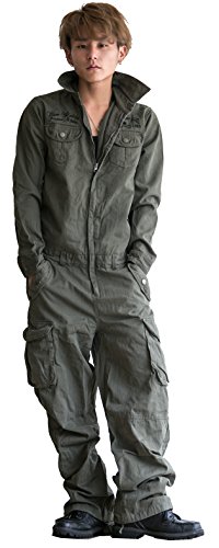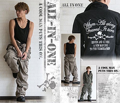 つなぎ メンズ ツナギ お兄系 BERNINGS-SHO(バーニングスショウ) クロスボーン スカル刺繍 ミリタリー 2017 おまけ付き KHAKI(緑) Sサイズ