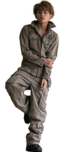 つなぎ メンズ ツナギ お兄系 BERNINGS-SHO(バーニングスショウ) クロスボーン スカル刺繍 ミリタリー 2016 おまけ付き BEIGE(ベージュ) Lサイズ