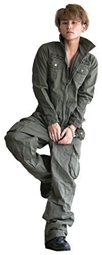 BERNINGS-SHO つなぎ メンズ ツナギ メンズ クロスボーン スカル刺繍 ミリタリー 2018 おまけ付き KHAKI(緑) XLサイズ