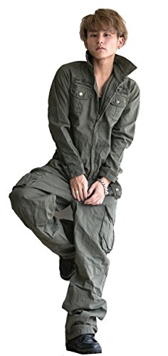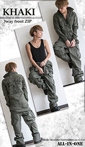 BERNINGS-SHO つなぎ メンズ ツナギ メンズ クロスボーン スカル刺繍 ミリタリー 2018 おまけ付き KHAKI(緑) Lサイズ