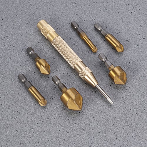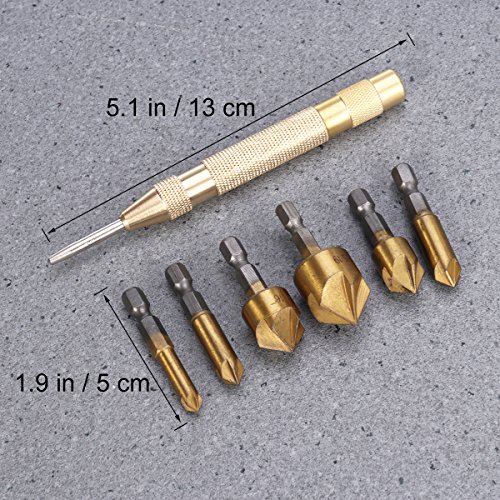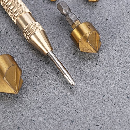 1/4 "六角シャンク装置カウンターシンクドリルビットセットと自動センターパンチは、主に木材の開口部、リーマ加工、面取りなどに使用されます。 MDF、合板、アクリル、PVC板、アルミニウム、銅などの軟質金属にも適用されます。