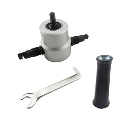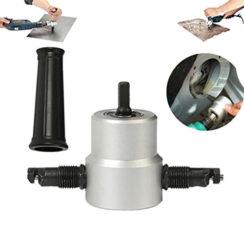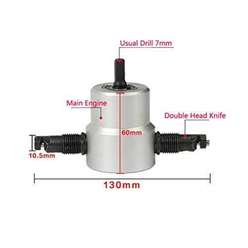- このデュアルヘッドエアメタルニブラカッターは、電動ドリルまたはエアドリルとともに使用します。