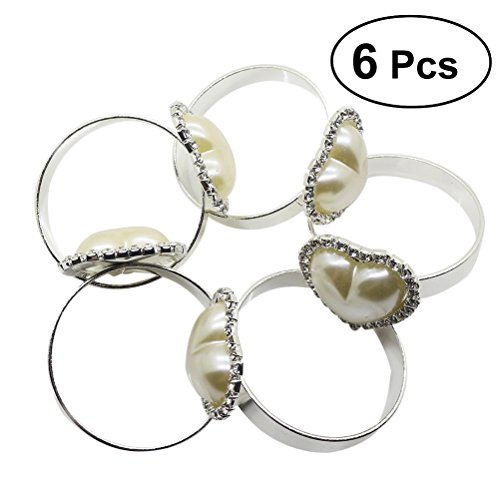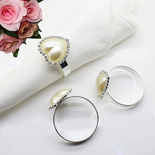 6 x Heart Shaped Napkin Rings Pearl Napkin Holder for Party Banquet Dinner Wedding Table Decoration