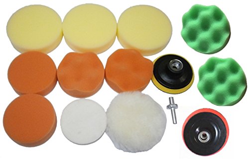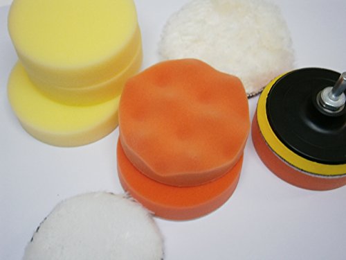 電動ドリルやグラインダーに簡単取付。あとはマジックテープ式で各種ポリッシングスポンジに脱着簡単。黄色いスポンジがワックスなど用です。オレンジ,緑のスポンジは洗車やコンパウンド研磨のときなどにご使用ください。緑とオレンジのスポンジは用途や研磨剤の種類を分別するのに色で分かりやすくするのにお使いください。
