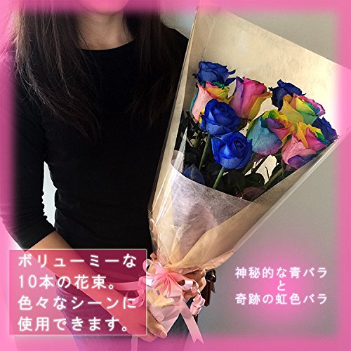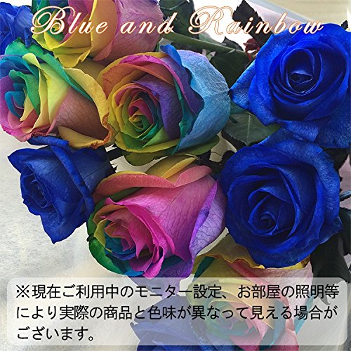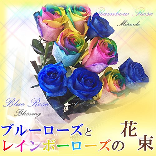 [ビズフラワー]オランダ産高級ブルーローズ5本とレインボーローズ5本の計10本の花束