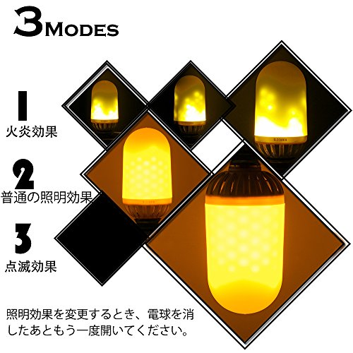 - 仕樣:口金:E27 入力電圧:AC220V 設計寿命:40000h 全光束:300lm 色温度:電球色 【多機能】3種類効果:火炎効果、点滅効果、普通の照明効果 照明効果を変更するとき、電球を消したあともう一度開いてください。