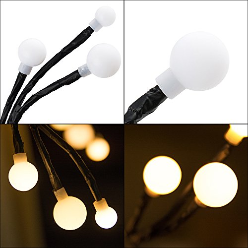 - ボールの直径:2.4cm /1.9cm /1.4cm。長さ:2.5M。カラー:ウォームホワイト。LED数:72個。入力電圧:120V。出力電圧:24V。出力電力:3.6W。動作温度:-15℃ - 50℃。認証:CE、RoHS。防水仕様:IP44防水(水没不可)。
