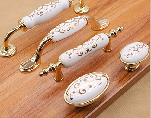Bulushiトップハンドル、7色セラミックハンドル、子供のIdyllicモダン欧州キャビネット引き出し、セラミックハンドル2pcs。 ゴールド