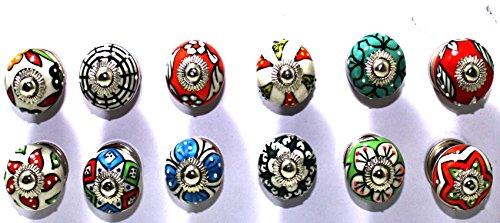 ブルーナイトのセット12ピース設計された点線のミックスカラーマルチセラミック食器棚キャビネットのドアノブ引き出しプル&クロムのハードウェア