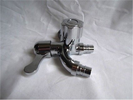 洗濯器の使用に便利な2口の蛇口、横水栓です。