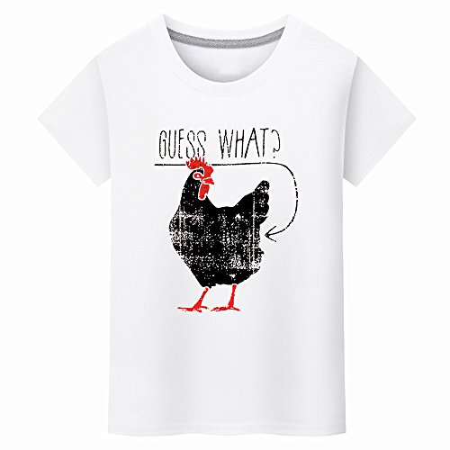 BOBOGOJP メンズ 半袖 Tシャツ オシャレ レジャー トップス GUESS WHAT? 英字 雄鶏の図案 春夏服 S-3XL 丸首 コットン製 tシャツ 彼氏 父の日 友達 誕生日 プレゼント 日常 通学 家 着 (2XL, ホワイト)