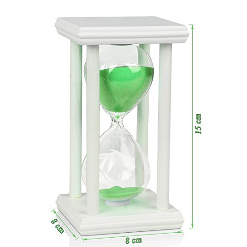 BOJIN 砂時計 サンドタイマー 木製 白枠 卓上 ガラス オシャレ時計 かわいい キレイプレゼント 贈り物 モダン 15分計 グリーン砂