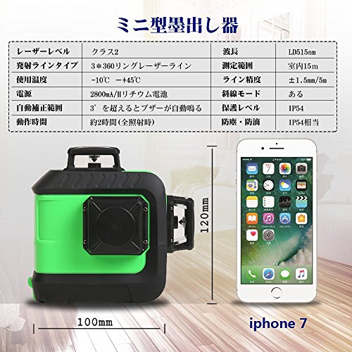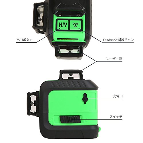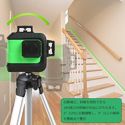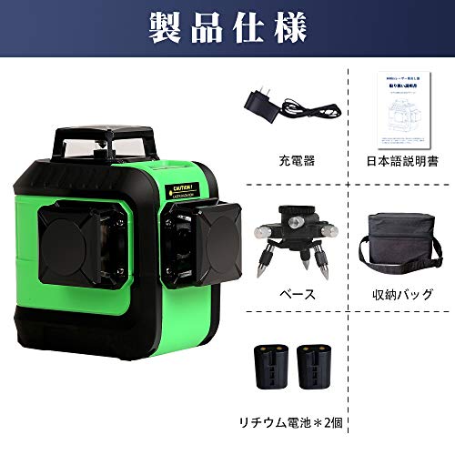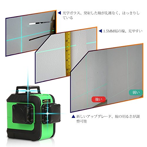 - 【水平360°*1本・垂直360°*2本】3つの360度のレーザーを同時に出すことができるので、装飾マスターは1つの位置付けで装飾作業を完了することができ、それは効率的、時間節約および便利である。
