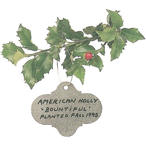 Antique English style stainless steel tag which can be attached to a tree, shrub or stake. Labels are durable and reusable. To clean off old markings use a lacquer thinner. Comes in packs of 50 with wire ties.