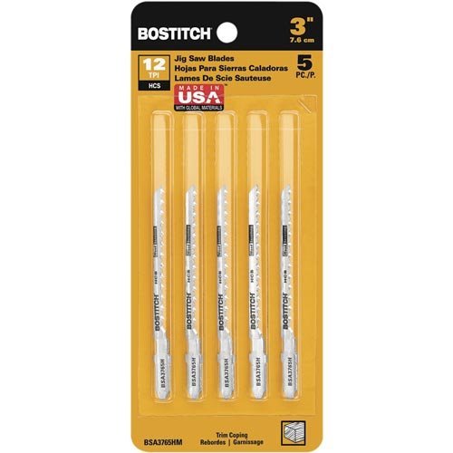 The BOSTITCH BSA3765HM 3" 12 TPI - Trim Coping Jig Saw Blades feature deeper gullets with increased free space which remove more material for faster cutting. These wood blades have precision ground teeth that stay sharper longer and deliver smooth, clean cuts. Common applications for this blade include wood working, countertops, metal working and used by general contractors. (5 blades per package).