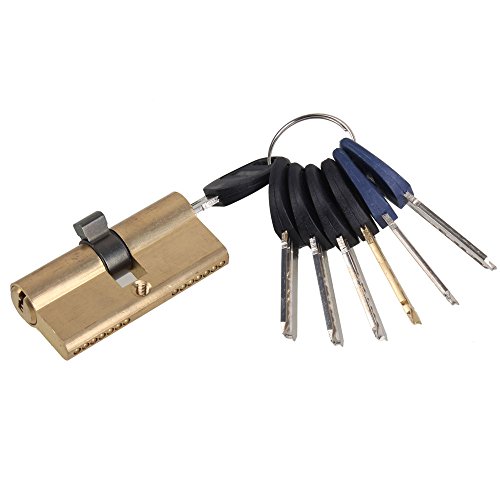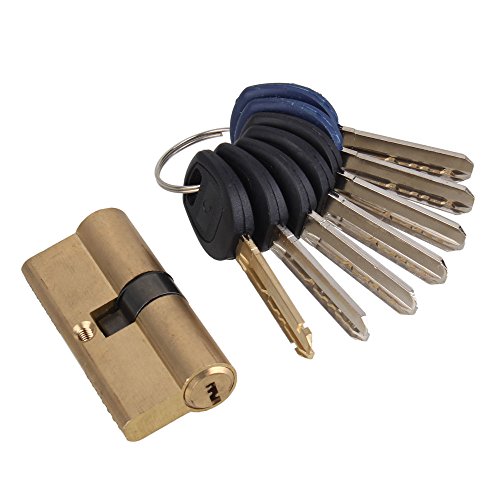 BQLZRユーロプロファイル円柱バレル5ピンロック真鍮サテンニッケル仕上げ65 mm with 7キー