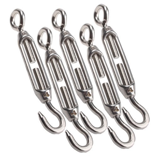 BQLZR m4ステンレススチール304 Hook & Eyeターンバックルワイヤロープテンション5個パック