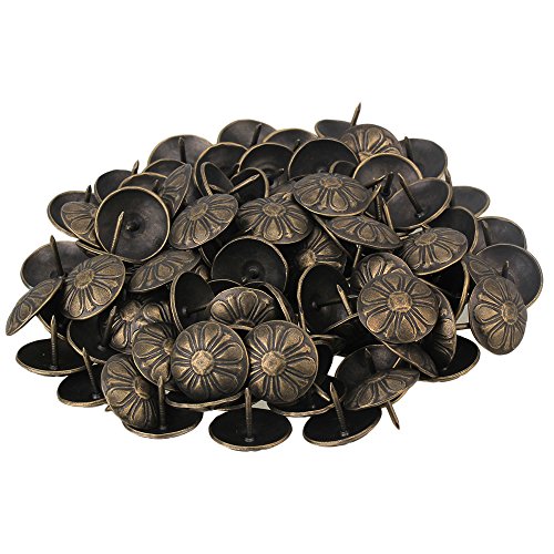 BQLZR 19 x 15 mmヴィンテージBronzy Upholstery Nailsアンティーク真鍮デイジーTacksスタッドピン家具装飾パックof 100