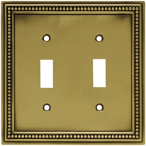 - Brainerd 64771 Beaded Double Toggle Switch Wall Plate / Switch Plate / Cover, Tumbled Antique Brass