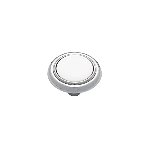 Casual design. Made of high quality zinc die cast material and ceramic. (1) 8-32 x 1-Inch machine screw included. 1-1/4" Diameter, Chrome & White, Ceramic Insert Round Knob, 3/4" High, 1" Screws Included In Polybag. The product is manufactured in China. Easy installation and easy handling.