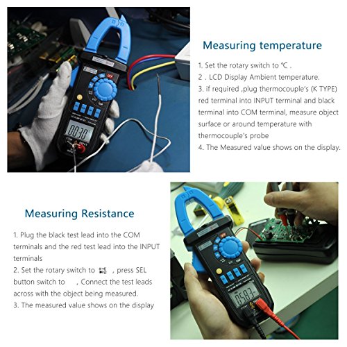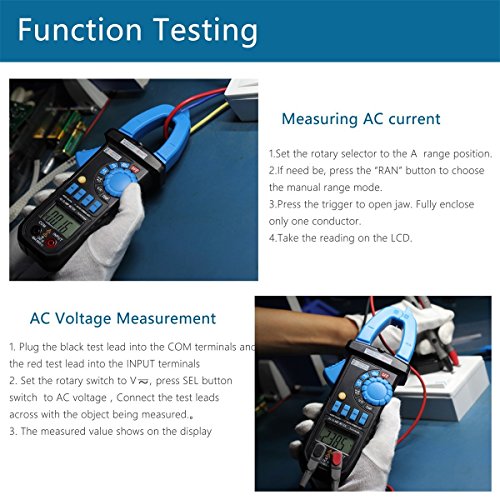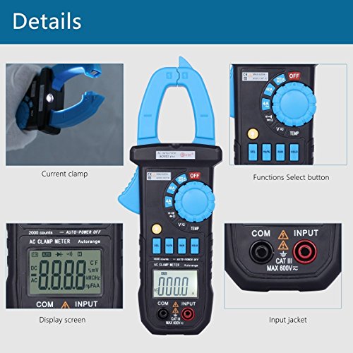特徴: - 自動/手動レンジ - 表示:3999カウント - バックライト - クランプ照明バルブ - 最大値ホールド - データホールド - オートパワーオフ(約15分) - バッテリーロウ表示仕様: - AC電流:4A(3.5% AC電圧:400mV / 4V / 40V(20%)×0.5A; 4A / 40A(3.0%+ 10)≤ 5A; 40A / 400A(2.5%+ 10); 600A(1.5% /400V(1.0%+5)600V(1.2%+10) - 直流電圧:400mV / 4V / 40V / 400V(0.8%+ 2); 600V(1.0%2) - 抵抗値:400Ω/ダイオードテスト - 導通テスト(抵抗が10Ω以下の場合はブザーを鳴らしてください。)+ + 60Hz、100kHz、100uF、40uF、100uF(3.0%+ 10) - 周波数:50Hz / 500Hz / 5kHz / 50kHz / 100kHz(1.0%+ 3) - Duty:0.1%~99.9%(3.0 %3) - 温度:-20℃ -1000℃ / - 4℉ -1832℉(3%+ 3) - 動作温度:-18℃ -28℃ :208x78x35mm - 重量:約340g - 電源:1.5V AAA x 3(別売)パッケージに含まれるもの:1 xクランプメーターテストリードセット1 x Kタイプ温度センサー1 x Ca rry Bag注:Aviation Security Checkのため、バッテリーはパッケージに含まれていません。不便をかけてごめんなさい。