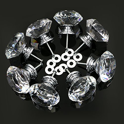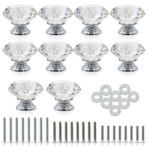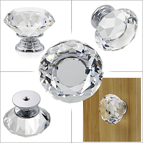 BTSKY® 30 mm クリアガラスクリスタル キャビネットノブ ダイヤモンド形 引き出し食器棚用ハンドル 3種類のネジ付き 20 PCS HD0002401*2-TR