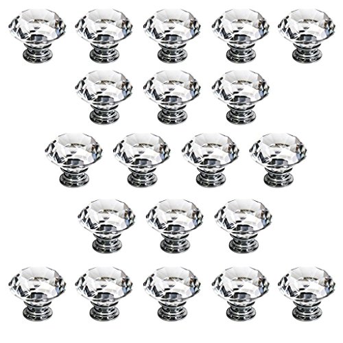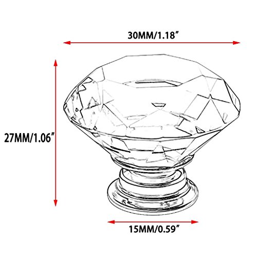 Generic 30mm Crystal Glass Diamond Shape Cabinet Knob Drawer Pull Handle Kitchen Colour Pink(Pack of 20)
