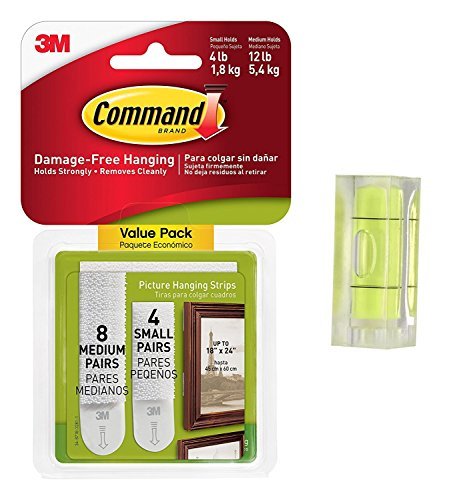 コマンド画像ぶら下げストリップさまざまな値パック、4-small and 8-mediumペア( 17203-es ) withバブルレベル測定ツール