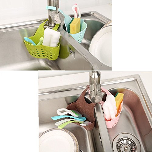 4パックHangingキッチンシンクキャディスポンジホルダーキッチンオーガナイザークリーニングブラシSoapバスルーム蛇口シャワー、調節可能なスナップ液体Drainerラック、プラスチック