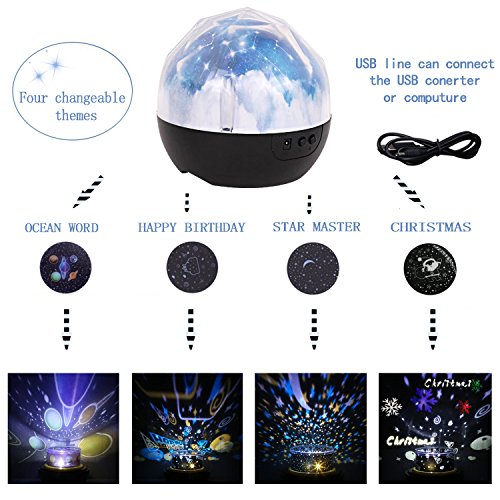 5. 3つの投影切替フィルム - 神秘的な宇宙、星空とハッピーバースデー。